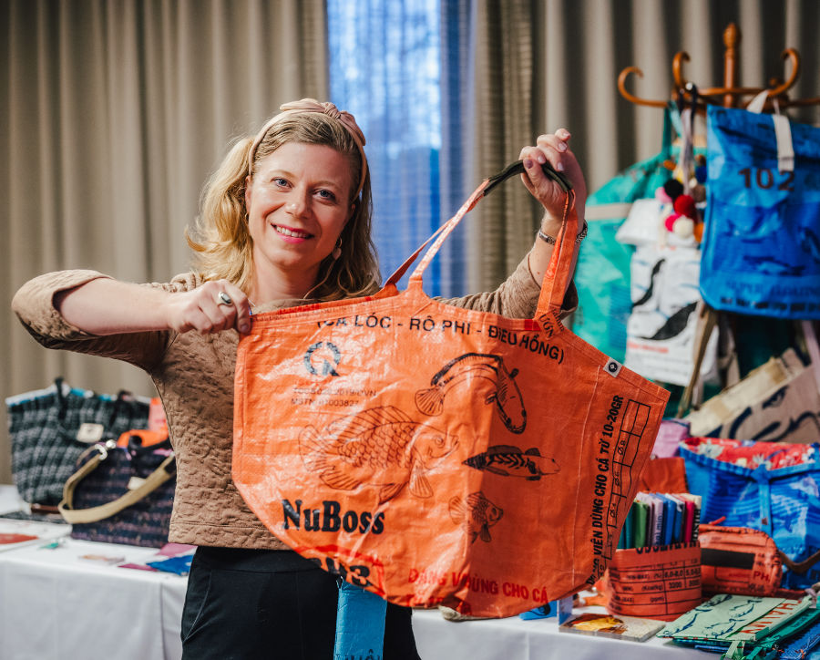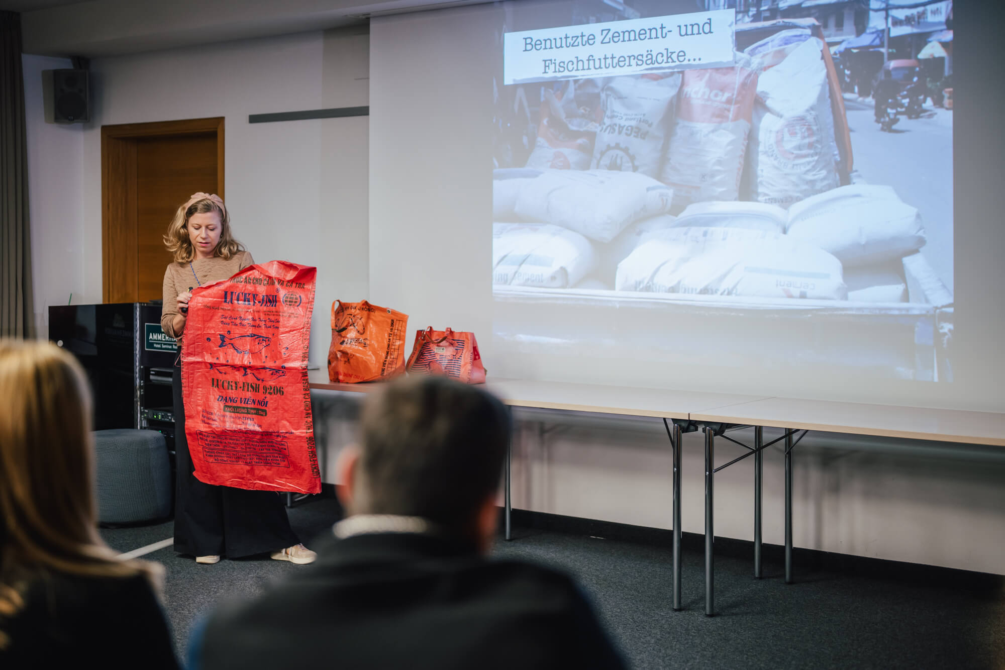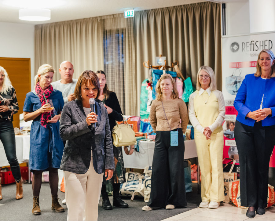 Im Anschluss präsentierte Sissi Vogler ihre innovative Marke Refished und gab spannende Einblicke in die nachhaltige Unternehmensphilosophie und das Thema Upcycling. Besonders interessant fanden anwesende Unternehmer*innen die Möglichkeit aus Fahnen und Beachflags GiveAways für Kund*innen und Mitarbeiter*innen zu kreieren.