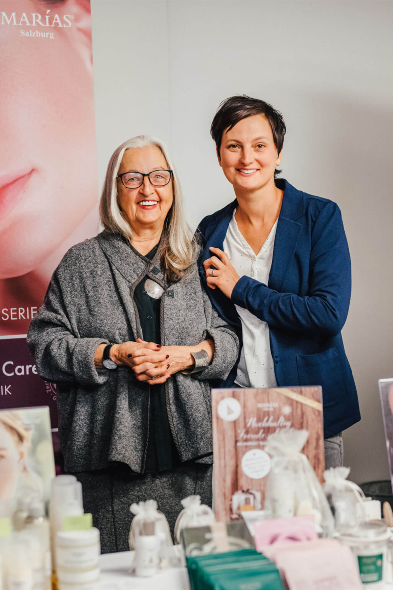 Dieses Mal begeisterten wieder drei unserer regionalen Lieferant*innen die Teilnehmer*innen mit ihren Produkten: Frau Maria Pieper (MARÍAS - Pieper Biokosmetik Manufaktur GmbH) präsentierte ihre umfangreiche Biokosmetik-Linie, über die sich seit heuer auch die Gäste im Hotel Ammerhauser freuen dürfen. Stefanie Radauer und Michael Adelsberger (Weissengut Anthering) begeisterten mit ihrem frischen Gemüse und selbst gemachten Köstlichkeiten. Ebenso sorgte Matthias Zehentner (Firma Tauernlamm) für kulinarische Highlights mit Fleischprodukten aus der Nationalparkregion »Hohe Tauern«. Abgerundet wurde die Produktvorstellung von Sissi Vogler (Firma Refished), die mit ihren individuellen Taschen, Geldbörsen und Rücksäcken für einen bunten, nachhaltigen Touch sorgte.