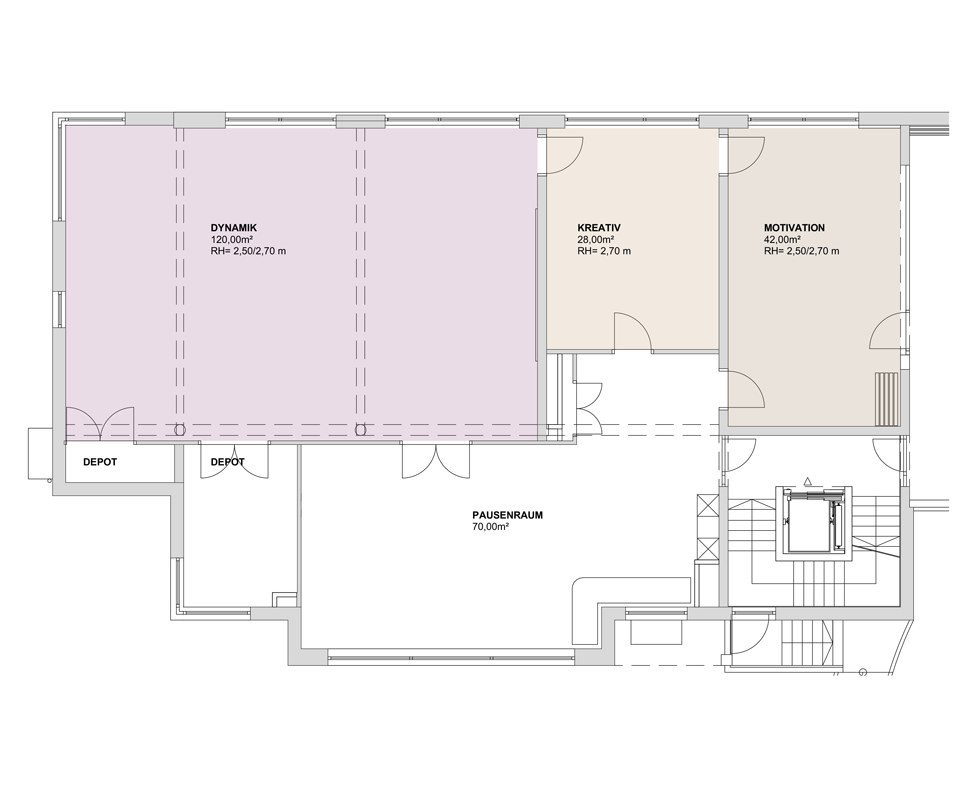 Das ist DYNAMIC. Der Raum zeigt Größe – in jeder Hinsicht (120 m²). Südlich ausgerichtet und von Tageslicht durchflutet, besticht DYNAMIC mit neuester Multimedia-Technik und einer überdimensional großen Leinwand. Der anschließende Kreativraum eignet sich perfekt für Gruppenarbeiten. Und weil Gedanken in freier Natur besonders kreativ sind, haben wir diesem besonderen Seminarraum, wie in allen anderen Räumen auch, einen direkten Zugang auf unsere Terrasse gegeben.